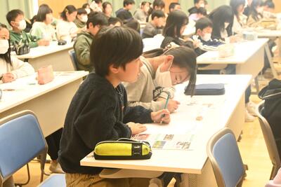 子供達は、いただいたパンフレットをじっくりと眺め、メモを取りながら真剣に話を聞きました。