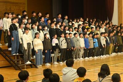 神町の先人たちによる開拓の物語を、大きな声で、声を揃えて群読することができました。