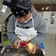 5年生の調理実習です。にぼしからだしをとって、みそ汁を作りました。