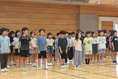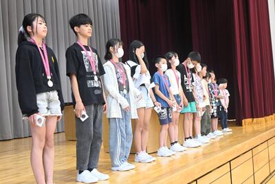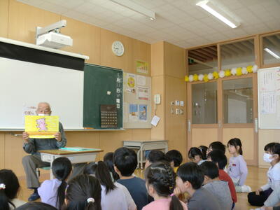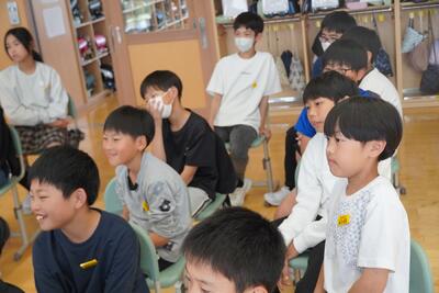 夢をかなえるためにケニーがしたこと「だれよりも〇〇する」。努力,挑戦,練習…子どもたちから声が出ました。しかし答えは「誰よりも失敗する」でした。マイナス発言をしないで,失敗から学ぶ。子どもたちの心に深く残った言葉でした。5年生一人一人が,今の自分と重ね合わせながら真剣に話に聞き入っていました。