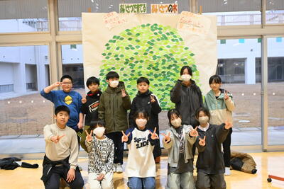 あいさつ委員会では,あいさつをさらに盛り上げようと,「あいさつで育てる!あいさつの木」を行いました。