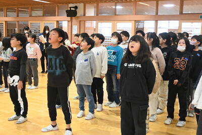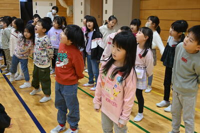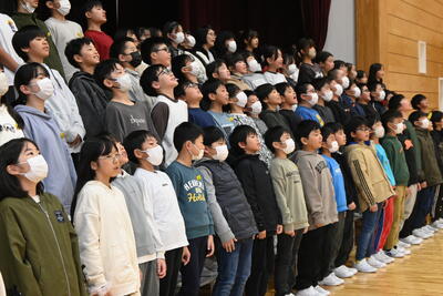 高学年の迫力のある声にリードされ,心を一つに声を合わせる練習を行いました。