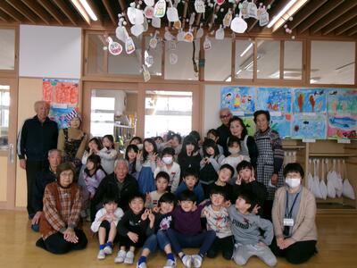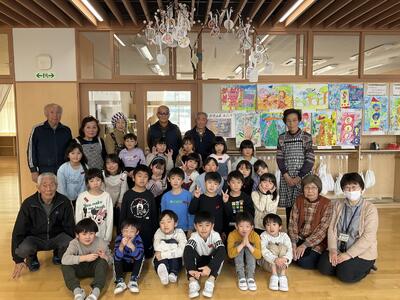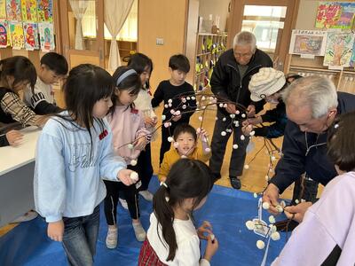 いきいきクラブの方9名にご来校いただき、だんごさしに込められた意味や願いを教えてもらいました。
