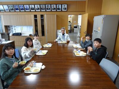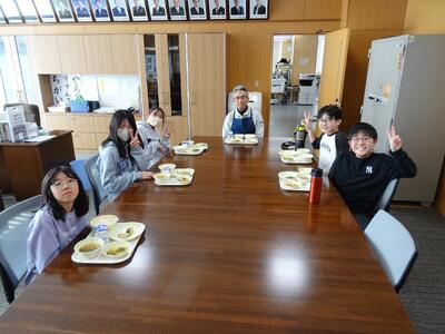 2月2日(月)から、校長室にて、6年生と校長先生が一緒に給食を食べる企画がスタートしました。