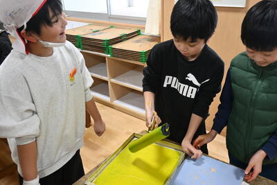 また、5年生は図画工作科の学習で、カラー版画に取り組んでいます。