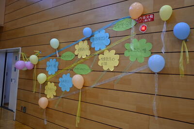 会場の体育館には、各学年で準備した掲示物が飾られ、華やかな雰囲気の中始まりました。