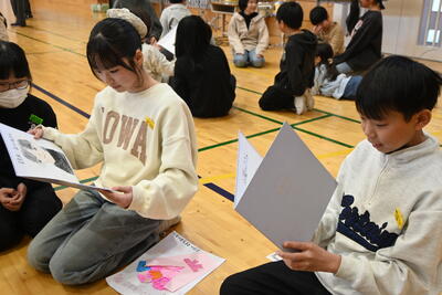 その後、縦割り班で集まり、1~5年生は6年生へ、6年生は下級生へプレゼントを渡しました。
