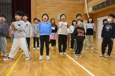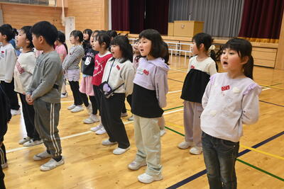 卒業式に参加する4・5・6年生で合同練習を行っています。