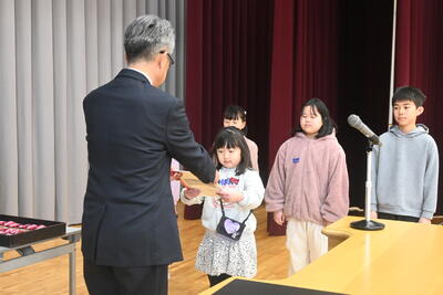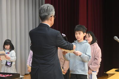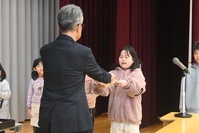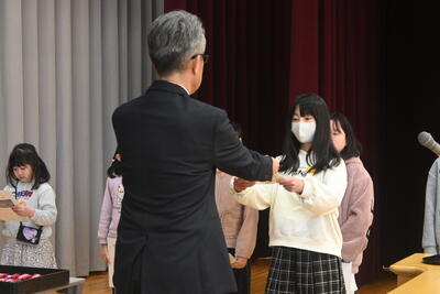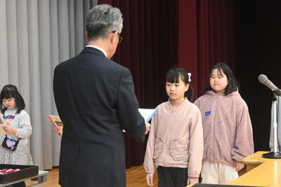 また、各学年の代表児童が登壇し、校長先生から修了証を授与しました。
