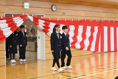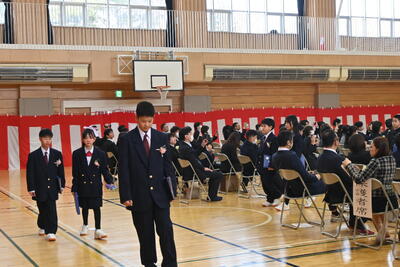 中学校の制服に身を包んだ卒業生が入場し、開式の言葉、国歌・校歌斉唱、卒業証書授与と続きました。