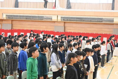 校長式辞では、6年生が学校のリーダーとして役割を担ってきたことや、一人ひとりが大きく成長したことについてお話があり、卒業を祝福しました。