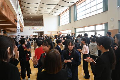 在校生と卒業生がハイタッチをし、別れを惜しんだり卒業を祝福したりする姿がたくさん見られました。