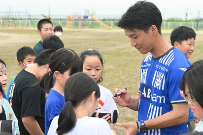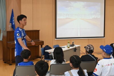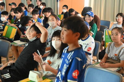 1日(火)は,5年生総合的な学習「ケニーが行く!夢を実現できる自分になる」が行われました。元モンテディオ山形の選手で現モンテディオ山形クラブコミュニケーターの岡﨑建哉さんが来校し,5年生に夢を実現することについてご自身の経験をもとに話をしてくださりました。さらにその後は,グラウンドで一緒にサッカーをしました。