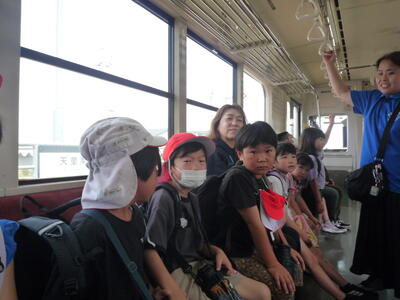 天童駅で駅や電車について学び,そのまま電車に乗って山形へ。