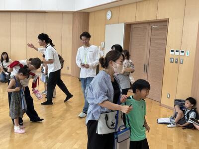 「次の部屋はこっちだよ!」などとおうちの方を案内しながら進み,最後は体育館でゴール!