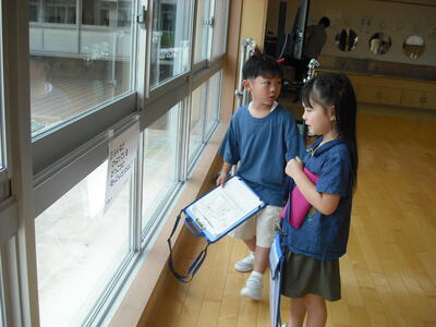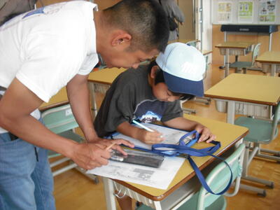 親子で一緒に学校をめぐり,それぞれのポイントに書いてある謎を解きました。