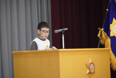 創立記念式では、6年代表児童が創立のお祝いの言葉を発表しました。神町小学校の歴史を振り返り、伝統を引き継いでいこうという思いをもつことができました。