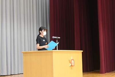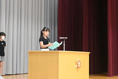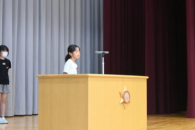 1学期に頑張ったことなどの振り返りや2学期に向けての抱負などについて,1年・3年・5年の代表児童があいさつをしました。