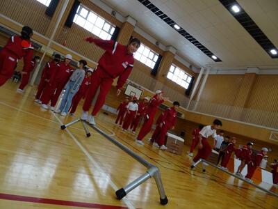 1回目と同様、講師の荒木先生にご来校いただき、跳び箱などの障害物をどうやってスムーズに乗り越えるかを教えていただきました。