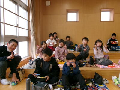 縦割り班毎に集まり、円になってお弁当を食べる姿は、とても嬉しそうでした。