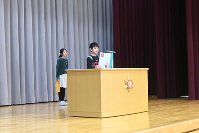 2学期頑張ったことの振り返りや3学期に向けての抱負などを、1年生・3年生・5年生の代表児童が発表しました。
