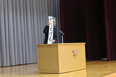 その後、校長先生より、それぞれの学年が「挑戦」し、「やり遂げた」ことについてお話がありました。